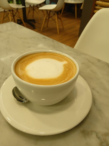 Read moreTenía muchas ganas de venir a este café hace tiempo, por su café de especialidad ( el capuchino estaba bueno) sin embargo he tenido una pésima experiencia que me ha dejado un sin sabor. Los meseros se demoraban en aparecer, tomar pedido tanto que tenía que acercarme a ellos para que atiendan. Finalmente cuando ya estoy por retirarme entro a los servicios; y una chica que estaba tomando fotos de sus productos cafeteros; derrama un capuchino en mi mochila. La trata de limpiar y decir disculpas sin más. Cuando llego y veo la mochila aún estaba manchada (hasta ahora queda el olor a café fuerte pegado en el cuero) y tengo que pedirle paños húmedos, ahí recién los trae y yo misma lo limpio. No hicieron más por resarcir el daño; ofrecer algo, o reparar de algún modo; es más me miraban con mala cara como si yo fuera la pesada por pedirles más papel, cuando la cafetería estaba en falta. Nadie se acercó ni el dueño ni los meseros; es más se iban para otro lado desentendidos. Lamentablemente me llevo un sin sabor de sus servicios o cultura cafetera; todo fue muy frío distante y 0 atención al cliente. (Incluso...