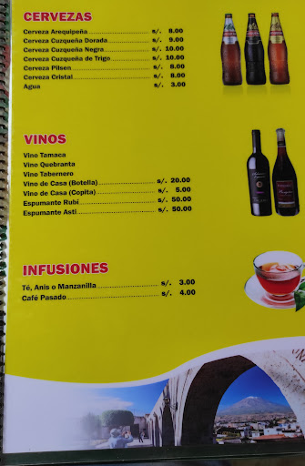 Read moreMuy buena comida, precios razonables, el sabor buenísimo. Es un restaurante mediano, con decoración simple. Tiene varias sedes muy cerca. En esta época de covid respetan todos los protocolos de seguridad. Es un lugar muy cómodo. La carta es variada, incluye menú arequipeño, criollo, marino y para niños. Tienen tragos, vinos y anís. Súper...