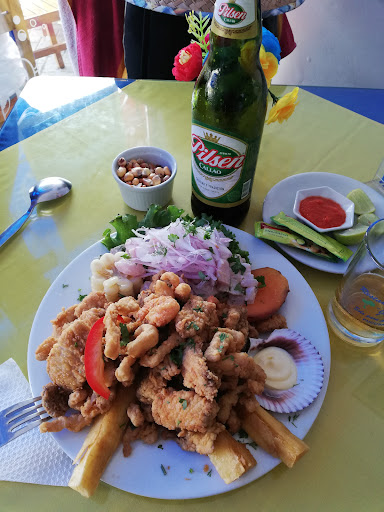 You really can't beat this spot. Upstairs, overlooking the bay with fishing boats and the rocky mountain cliffs in the distance, with fresh mixed ceviche with a generous portion of several kinds of fish, conch, shrimp, octopus, and more, and a cold Peruvian beer, and the sweetest staff. They even made an effort to communicate in English, and I met them halfway with my minimal Spanish. Either way, the feeling of warm hospitality I got transcended language. The salted crunchy corn kernels brought out before the meal were so good too. This town is such a special gem, and this restaurant was definitely the right place to go to add to...