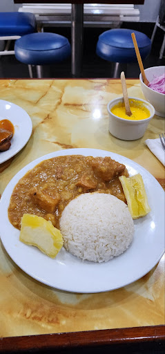 Think cafeteria meets diner. The servers are polite and friendly. Most look like they've been here for most of their lives. The food is simple and approachable. I had the arroz con asada. It was two thinner sliced steak cuts with a light tomato based sauce served with white rice. Husband had the carapulcra. It was a pork stew with peanuts and potatoes. It had a unique flavor and it was not heavy.
