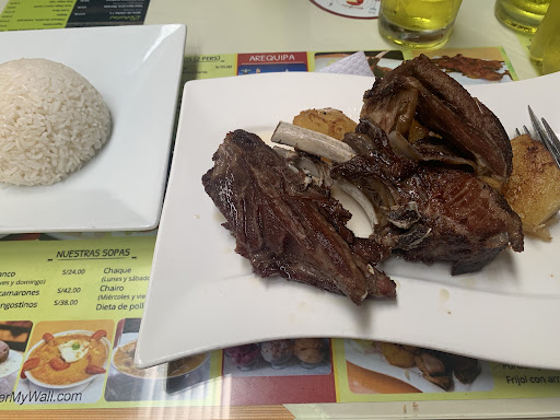 Read moreBueno tuve la oportunidad de visitar en 2 oportunidades esta linda ciudad Arequipa, hoy visité con mi familia este point recomendado por Ariana Bolo, se asemeja a la sazón de las picanterias de allá.. sólo una petición: deberían hacer un esfuerzo en traer los panes tres puntas y acompañar al adobo, pero no le pongan pan francés... hoy probamos Ocopa y Rocoto relleno de entrada, de fondo cuy entero, malaya, costillar, seco de cordero y su rico adobo. Estaban deliciosos y recomendables.. así que vayan a ojos cerrados, nos faltó el chupe de camarones... se...