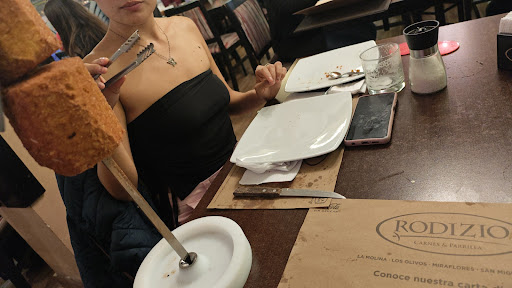 Hoy almorcé en Rodizio de Los Olivos lamentablemente una decepción la atención solo pa señorita que se encargaba de distribuir el acompañamiento atenta pero , mas no podía hacer ella seguro por que no era su área, por esto de la pandemia ya todo viene en parrilla para que este en la mesa, cuando terminamos esperamos la primera vez casi media hora no hubo variedad de carne casi todo nos servia el encargado panceta y algunas carnes y cada vez que se acercaba era de esperar , cuando avisabamos que estabamos esperando ..decian que ya salía...y todo para que sirviera las carnes como para una persona y yo fui con mi esposo....muy mala y pésima la atención . Creo que no colmamos su interés de que nos llenaramos con las guarniciones por que justamente yo fui a ese establecimiento por las carnes , no me quería llenar de limonada , de gaseosa ni de papas fritas , solo quería disfrutar de las carnes, su ensalada y su buena botella con agua mineral. Y o casualidad cuando ya nos aburrimos por que creo que esperaban eso, comenzaron a atender las otras mesas. Si o si la espera fue demasiada y eso observe en otras mesas cercanas a la mia. Para finalizar al pagar con tarjeta el empleado le pidio propina a mi esposo , pero no me parece y no le dimos por que esa persona que nos atendió mas se dedicaba a otras mesas la cual esta bien ..pero cuando estaba desocupado le pedíamos ensalada y ni eso nos trajo..pero la otra señorita si. Estando en la mesa hicimos el pago mi esposo pidió boleta y esta persona en vez de concluir su atención con nosotros se fue atender otras mesas y de tanto esperar nos retiramos. Estábamos por hacer una invitación de almuerzo familiar en ese lugar pero con esta...