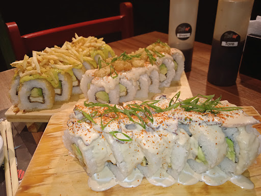The makis rolls would make the Japanese want to commit seppuku. We had a big group and tried ~12 different options, the fish ones and some vegan options. The makis had overly large pieces that were at times 80% rice (which was incredibly dry) and covered with a thick creamy ranch like sauce that made me want to gag. Some of the sweeter options that had mango and a syrup that was caked on to the point of being overly sweet and inedible, one of our table members had to pay another to finish the roll so we wouldn't be charged extra for it. The "fish" pieces were few and flavorless and drowned out by excessive cream and sugary additions. One of us got a mini poke bowl which was 50% white rice, and when we didn't want to finish all the rice they charged us...