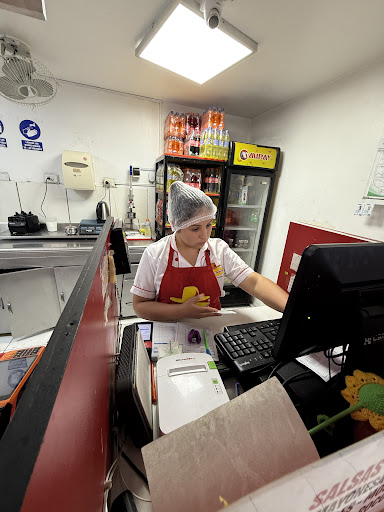 Servicio 1 persona que cobraba y a la vez ayudaba en la cocina para empacar los productos.