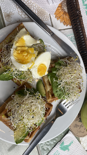 Read moreA very friendly place. Comfortable seating for either coffee or a meal. Large windows, interesting murals. The menu is available in Spanish and English. We had breakfast. The American waffle breakfast had great bacon and ham and waffles but should have been served a bit hotter. I also order toast with jam. The coffee was large and strong but good and not bitter. My wife had avocado and poached eggs on toast. She doesn’t like runny eggs so we ordered them hard boiled and they came as requested. The waiter was friendly and was able to help in English which will be comfortable for some customers...
