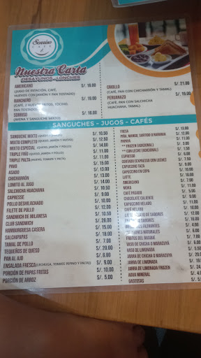 Read moreLamentablemente no lo recomiendo. Hace unos días pedí un menú y me dieron una pieza de pollo que era puro hueso. Hoy pedí seco con frejoles y los frejoles saben a quemado. Estoy cansadisima por haber caminado todo el día y solo quería una comida reparadora pero mi ánimo se ha ido al subsuelo. Esperaba que me ofrezcan una propuesta o un cambio, pero solo me mandaran papas fritas una opción elevada en grasas y en comparación a los frejoles nutritivamente es inferior. No volveré a comprar...