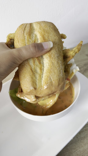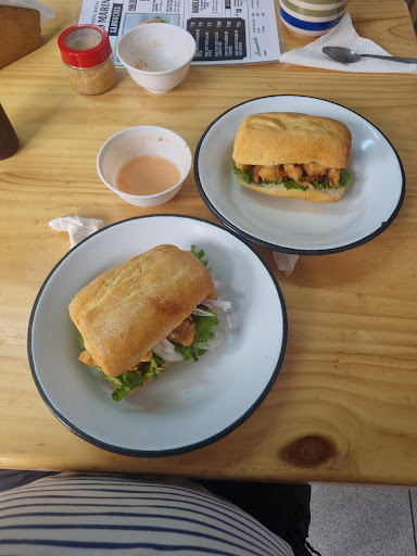 En cuanto al esperado pan con pejerrey, la verdad es que no cumplió con las expectativas. La textura era aguada, el interior del pan no estaba bien cocido, y el sabor era bastante común, sin ningún elemento que lo hiciera destacar.