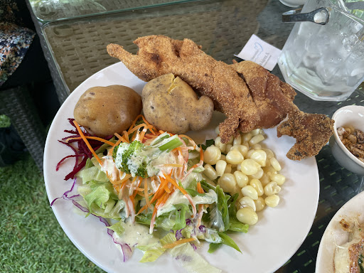 Read moreRestaurante campestre con mucha vegetación bastante cuidada. Cuenta con piscina (completamente sucia cuando yo visite el establecimiento un lunes), área de niños( precio pago de ingreso) y una zona de escenario que está en construcción.