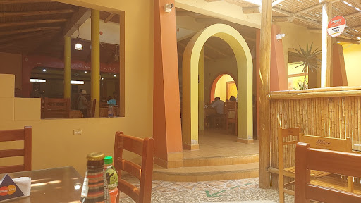 Ambiente con decoración rústica acorde al sitio donde brinda el servicio , con imágenes sobre la historia y cultura de Monsefú.