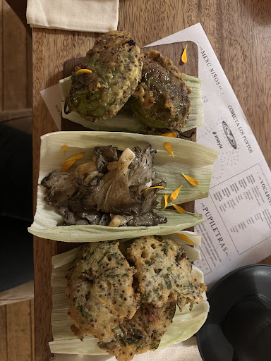 Read moreWe came here after a little nap. Traveling from NYC - Bogota - Cusco - Ollantaytambo took a toll on me so I arrived at the restaurant not feeling well. We ordered the coca tea to start and they brought a little appetizer of the local grown corns and grains that came with a green sauce and a hot sauce. I also adored the tiny grater for the salt. I ordered from the asadas menu and got the hongos ostra (oyster mushrooms) and the torrejas (delicious fritter with grains) and rocoto relleno (stuffed veggie rocoto pepper breaded with the same grains as the fritters) as sides. He got the trucha con sarza de trigo. He said the trout was the best dish he had on the trip and we both loved the little side salad with the vinaigrette. Pro tip: the fritters were also delicious when we ate them cold for breakfast because I had leftovers. After dinner, we felt better and we ended up staying and relaxing with a matacuy sour and then got another round before leaving because they were so good. The matacuy has a lovely citrus and fennel combination. We also ordered the Wari on another visit and appreciated it as well!