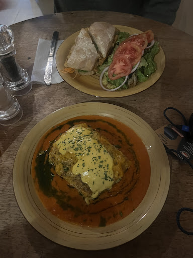 Read moreAte here a few years ago, and the bagels are good ! Not sure if they make bagels anymore. We went for dinner Tater tots were good more like a potato. croquette.. luckily we ordered this as we really couldn’t eat much of the other food! I Ordered the pulled chicken barbecue sandwich! First of all, it’s not pulled chicken. It’s chopped cold old chicken.! The Sweetest sugary THIN WATERY barbecue sauce which really wouldn’t really be called a barbecue sauce was poured on top! Could barely find the chicken inside the bun, it was cold NOT HOT It was so sweet.! Really they should take it off the menu! They do not know how to do barbecue nor was it pulled chicken!! Chicken breast should not be served in a pulled chicken sandwich , it should be the thigh tender, and Juicy ! And really important to serve it hot !! Really super disappointing! We went and ate falafel after! My friend ordered the vegetarian bean burger, it lacked total taste.. was mushy. And my friend did not enjoy it at all.! I hear the meat burgers are good, but she was a vegetarian! Completely disappointed I think the food has gone downhill in this restaurant! Too many other good restaurants in Pisac to have to go to this one! Staff is very sweet, maybe lacking in serving skills as we had to ask for plates for our appetizer.