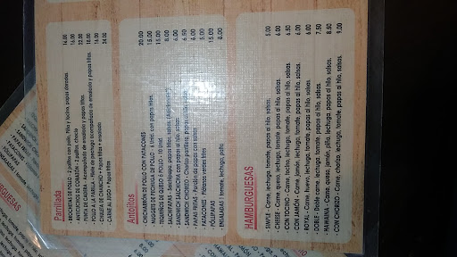 Read moreHamburguesas y otras comidas rápidas muy ricas, con cremas a tu disposición, buen precio. Buena atención. Sin música, ponen TV. Espacio tranquilo donde se puede conversar. No hay estacionamiento como tal, puedes dejar tu vehículo afuera, ahí suele haber una persona (que no es parte de) que ofrece cuidar tu transporte a cambio de...
