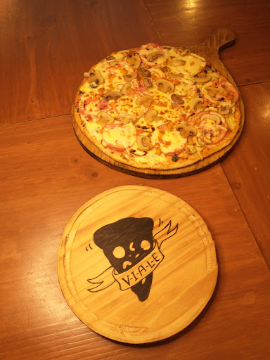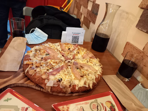 La pizza estuvo muy rica. Ordenamos una Carbonara, nos gusto que tuviera bastante cebolla, champiñones y tocino. Tambien tuvo pollo y espinaca. Los sabores muy bien balanceados. La chicha también estuvo rica.
