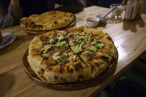 Really, really good pizza in authentic Neapolitan style with fluffy border and thick enough base that you can eat it with your hands. The dough is properly leavened for a long time, so the pizza is easy to digest and then it is perfectly cooked in a wood fired oven. The fact that it tastes so good at 4.900 meters (over 16,000 feet) of altitude speaks volumes about the pizza chef's ability to measure the salt needed, as at altitude the combination of the dry air and pressure change reduces our taste bud sensitivity. In fact, our perception of saltiness drops by more than 30 percent at this high altitude. The restaurant is not huge and it fills up quickly as it is popular, but pizzas come quickly out of the oven and even if there is no available table, the wait is probably not going to be too long. Service is very efficient, kind and friendly and the atmosphere pleasant....
