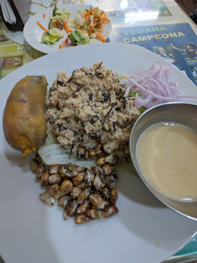 Read morestarted out strong with a self-serve salad and pasta bar and a vegetable soup (bland, but fine enough). but then i ordered my main dish, ceviche, which was the most disgusting thing i have eaten in 7 months in south américa. i have had delicious vegetarian ceviche in various restaurants all over ecuador and perú, but i don't know what this was. it looked like cat vomit and, i imagine, tasted like it too. so disappointing. DO NOT order the ceviche if you want to have a decent meal. also 20 soles is a bit high for an almuerzo, even at a...