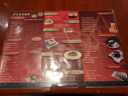 La carta del restaurante sencilla , pizzas , ensaladas y algunas pastas. Las pizzas las hacen en 4 tamaños , ojo que la persona es bastante pequeña.