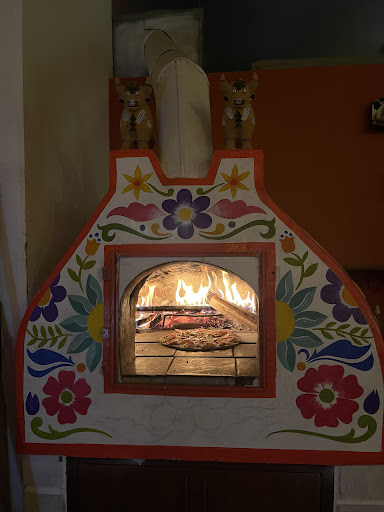 Pedimos una pizza y una lasaña de res, ambas acabadas en el horno de leña. La lasaña estaba buena, pero la pizza nos sorprendió especialmente. Usan una masa de trigo mezclada con quinua, con un sabor y una textura muy original y rica. La masa estaba crujiente y bien hecha. Tanto la pizza como la lasaña llevaban el mismo tipo de queso, tipo mozzarella (supongo que local), muy sabroso y "estirable".