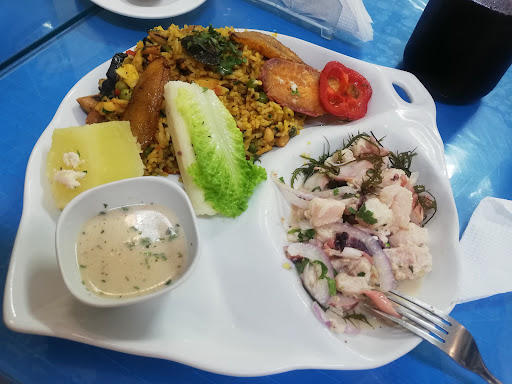Ubicado en una avenida concurrida, hay estacionamiento para autos y motos en la parte frontal de manera gratuita. Puedo pensar que se puede estacionar al frente también, sin embargo no he visto servicio de guardiania tampoco valet parking... Quizás la zona no necesita, no tiene índice delictivo alto. Así también puedes ir en bicicleta y colocarlo en la entrada. Acerca del interior, es limpio aunque el piso desgastado. La decoración es buena y tiene una zona para niños. Se puede pagar con tarjeta de crédito o débito hasta cierta hora qeu atiende el sistema. En cuanto a la comida, es relativamente buena con sabores de la zona. En la oportunidad que fui Nov 2023 por la tarde, pedí duo marino de ceviche de pescado y se confundieron (quiero pensar) y me trajeron ceviche mixto con mariscos. También chicharrón de pescado que, no era la mejor preparación. En mis perspectiva el pescado estaba hecho como una masa. Quizás los demás platos en la carta tengan un mejor sabor y presentación. La bebida (chicha morada) muy buena! Considero una buena opción de cevicheria...
