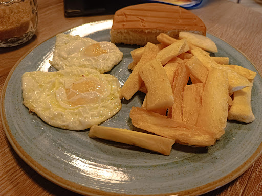 Read moreEggs & yuca breakfast with a frappe was good. Service is friendly but slow. Very hard, flat, uncomfortable chairs. Satisfactory,...