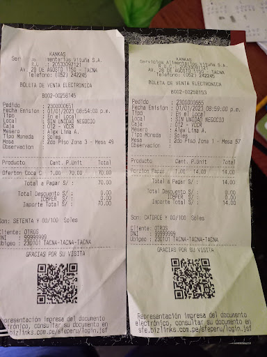La comida muy buena, exquisita, gran cantidad y abundantes cremas, lo unico malo fue la atencion, para ser mas preciso del mozo que nos atendio, que segun la boleta se llamaba Alex Lima, andaba muy apurado supuestamente, atendia mal, le pedias algo y practicamente tiraba las cosas o las dejaba sin ganas o desprecio, lo peor fue al momento del pago, la PRE CUENTA no estaba completa y el mozo la puso con lapicero, no nos hicimos problemas, pagamos, pero al recibir la BOLETA nos dimos con la sorpresa que no estaba completa, por lo que tuvimos que exigir que nos traiga la boleta de lo restante, nos dijo que demoraria, pero igual esperamos, la trajo, y de igual manera, la tiro con desprecio, al parecer este mozo usa esta modalidad para no registrar completas las ordenes y posiblemente quedarse con el dinero de lo que no declara en la cuenta, sugeriria a la administracion tener mas cuidado con este tema, ya que podria afectar a la empresa, cabe mencionar que tuve otras atenciones posteriores con otros mozos y no tuve este problema, de igual manera adjunto fotos de las...