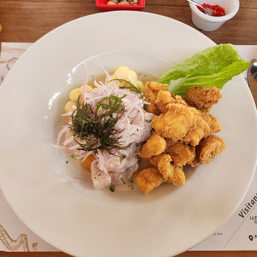 Si eres del norte o te gustan los pescados y mariscos, acá es. El ambiente, el trato del personal, la comida y sus ingredientes, la experiencia en general muy bien. La comida estuvo muy rica, la leche de tigre Callao fue la mejor que probé en mucho tiempo, me llamaron poderosamente la atención que la sirvan con papas fritas en hojuelas. Viene acompañada de chicharrón de pescado frito en aceite no reutilizado, por su color y sabor. Pedí una Parrillada Marina; pulpo, lagostimos y brochetas de pescado, acompañado de papas sancochadas y ensalada. La salsa dónde reposaban los alimentos estaba muy bien preparada. El sentir en el paladar los ingredientes ahumados te da una sensación que solo un plato muy bien preparado te da. El pulpo brotó todo el aderezo con el que fue preparado, estaba suave, los langostinos bien cocidos y el pescado en brocheta con verduras, sumaron la nota perfecto. Si son de fuera y tienen oportunidad de estar en este...