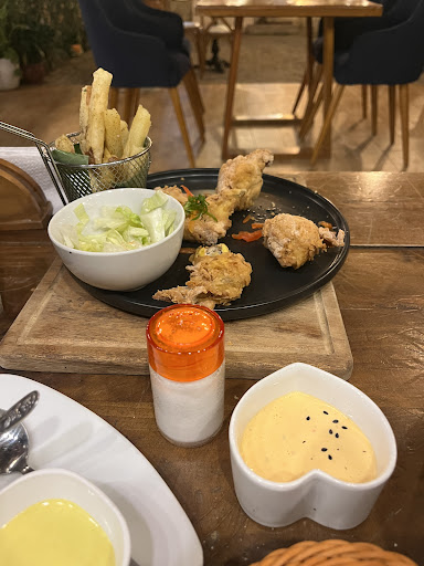 El servicio malo, la señorita nos respondía poco servicial. Pedí unas alitas a acevichadas y el pollo era amarillo y sin sabor, las papas estaban feas, para nada crocantes y sin sal; la crema del acevichado la pedí aparte, también no me gustó para nada no tenía sal, el jugo d maracuyá sin mucha azúcar y falto de esencia. Pedí también unos patacones eso si estaba ok, pedí cremas, pensé q darían alguna salsa de cocona con cebollita, pero nada solo cremas con mayonesa, feas. El local si es bonito, iluminado, pero no tiene ni aire acondicionado ni ventiladores. No recomiendo nada de...
