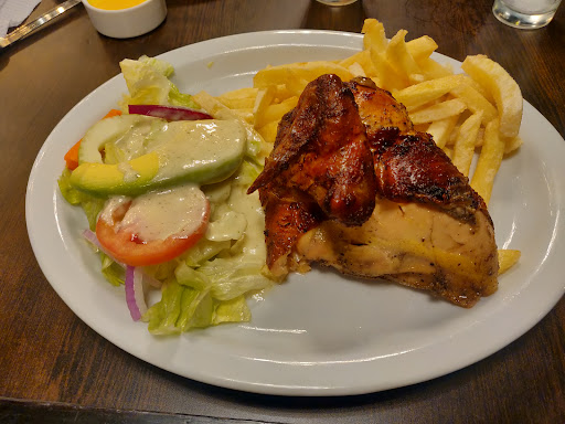 Al llegar (lunes 3pm), el lugar tenía 3 mesas ocupadas. Me senté en una y estaba totalmente llena de tierra. Las meseras sentadas, me vieron entrar y tuve que acercarme a ellas a pedirles la carta. No tenían nada de gracia. Pedí 1/4 pollo (27 soles) y una inca de 1/2lt (6 soles). El aji no tenía buen sabor así como la mayonesa que a ambas se notaba que les habían hecho con chuño. Malísimas. El pollo estaba algo condimentado por fuera pero por dentro super desabrido. Era un pollo común y corriente, que puedes encontrarlo en cualquier lado y más barato. Las papas fritas sí estuvieron respetables así como la ensalada, pero nada wow. Al pedir la cuenta me la trajo otro mesero que era super amable, me preguntó : sr todo bien? Le puedo traer algo más?... Muy atento, que pena no me atendió él desde un inicio, le di la propina y me dijo que se la iba a dar a su compañera, le dije no, es para tí, que de todas las meseras ahí, él fue el más amable y atento. Servicio 1/10 (con excepción del mesero al último) Comida 4/10 Limpieza 1/10 barran al menos Ambiente 4/10 Rapidez 8/10 Precios 2/10 muy caro para lo que es.