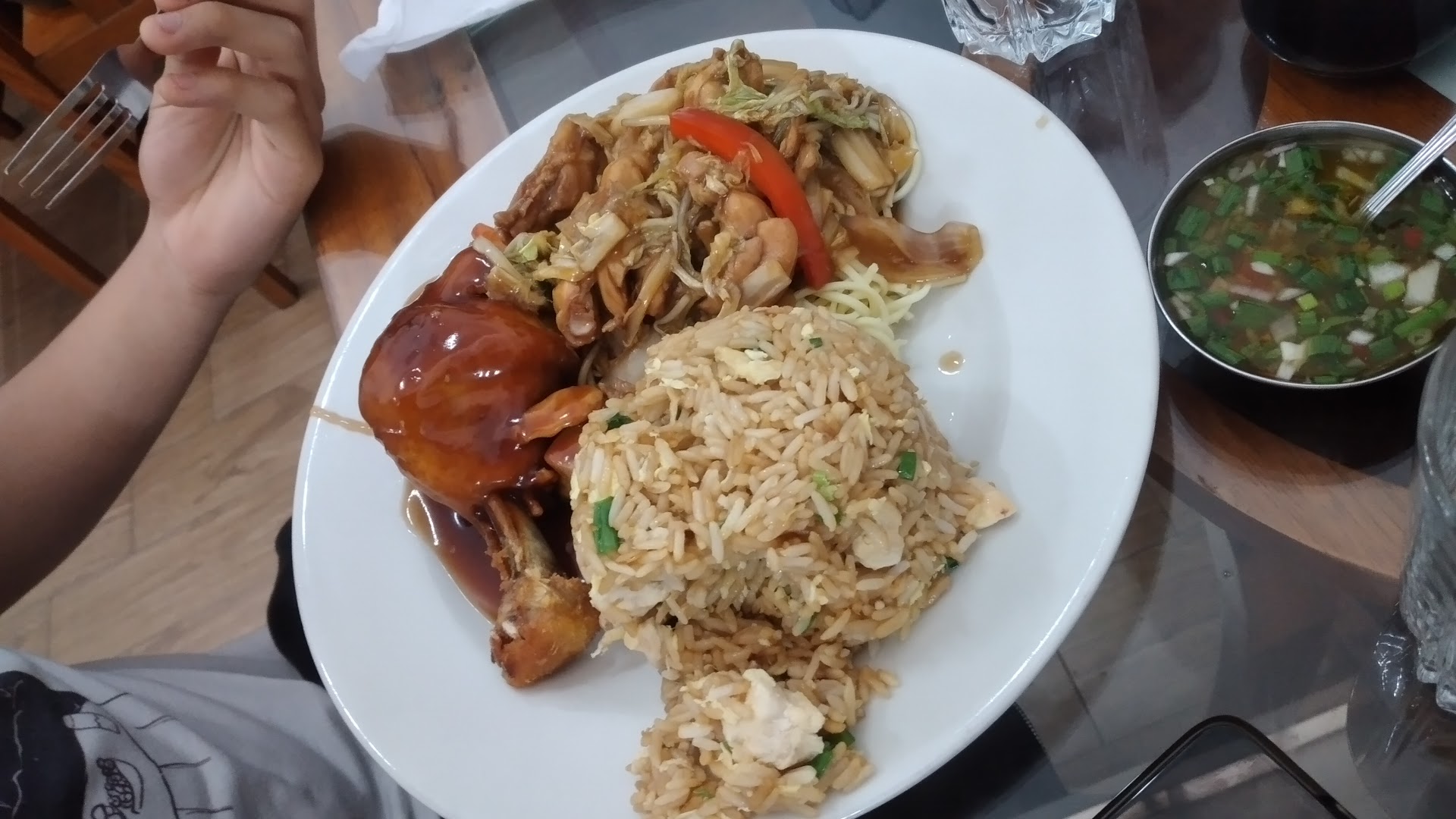 Read moreBuena sazón, lástima que el diseño del arroz se destruyó apenas llegó a la mesa y salió así en la foto, muy buena atención al cliente, desde el seguridad, hasta el mozo. Muy limpio todo, sin embargo le falta mucho en la decoración, tienen un televisor, que lo tienen apagado, pedí por favor lo encendieran como para distraerse mientras uno espera, me dijeron que iban a buscar el control de la tv, supongo que hasta ahora no lo encuetran. Finalmente, buena atención,...