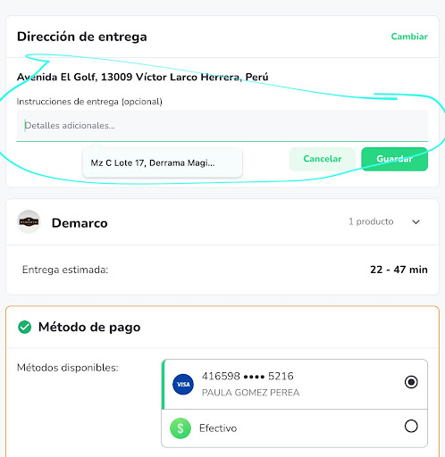 Read moreUnos estafadores, especialmente el repartidos del Rappi. Dejé en especificaciones la dirección exacta del lugar a entregar y el señor no se digna a leerla, yendo a la dirección general que sale arriba y luego reclamándome X soles por la distancia de diferencia, la cual estaba en especificaciones desde el inicio así como en mensajes mandada antes de salir. Contraten a profesionales! No lo...
