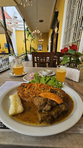 Read moreUn restaurante que no tiene pierde, el lugar es super amplio y elegante, hay diferentes ambientes, espacios abiertos y tranquilos para comer al aire libre, así como espacios cerrados para comer con música de fondo, todo muy limpio, y el baño impecable, además está a solo 1 cuadra de la Plaza mayor de trujillo, super céntrico. El servicio es 10 de 10, me atendió un mozo super amable y paciente, siempre se preocupaba por no dejar que mi vaso se quede vacío, y bien atento por si se me ofrecía algo, no retiró mi plato hasta que se lo pedí, ya que comí demasiado. Y es que la comida estuvo deliciosísimaaaa. Me pedí un cabrito deshuesado con tacu tacu (57soles) y quedé muy sorprenida cuando ví que el plato es tremendooo, como para dos personas, el tacu tacu era casi 2 veces el tamaño de mi mano, la carne super suave y jugosa, valió cada centavo pagado. Un plus bastante importante, que no puedo dejar pasar, es que por andar tan animada y con la mente a mil, se me quedó la billetera con mis tarjetas y dni en el baño, me dí cuenta 1 cuadra después de haberme ido del restaurante, pero cuando regresé, todavía estaba allí, intacto. Me sentí muy bendecida de haber conocido un restaurante tan bueno y trabajadores tan honestos....