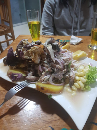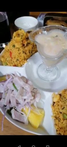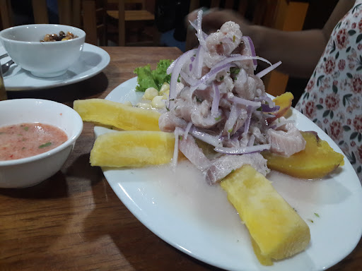 Read moreBuena atención, el sabor de sus ceviches son muy buenos, tiene dos ambientes uno cerca a la barra que funciona tambien como caja y otro ambiente al aire libre con un par de arboles y los baños cerca. Las mesas del ambiente al aire libre son de plástico y del otro ambiente son de madera, hay música una pantalla, y cuenta con vigilancia en el estacionamiento. Precio por plato para 3...