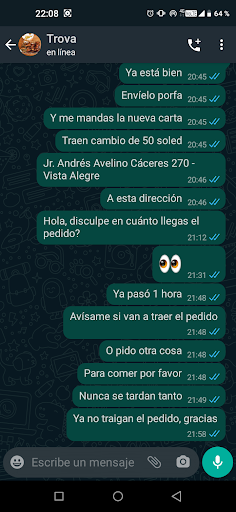 Acabo de tener una terrible experiencia ahora mismo. Pedí 24 alitas por delivery y después de esperar 1 hora, deje mensaje a su WhatsApp y me dejaron en visto, llamé y me colgaron el teléfono más de dos veces. Después de una hora y media tuve que decirles por WhatsApp que cancelen el pedido. Me toco pedir en otro lugar. Siempre e pedido alitas ahí, pero después de esta terrible experiencia, nunca más. Falta de profesionalismo y servicio al cliente. Por favor, si el dueño esta lellendo esto llámeme, gracias. Tengo fotos de las...