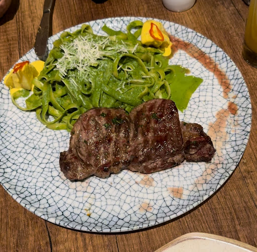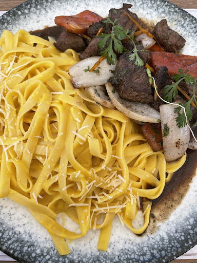 Se demoraron en tomarnos la orden. El king al pesto se veía buenazo en foto, pero fue una decepción tremenda: estaba sin sabor y muy aguado. Pedí término de cocción 3/4 y cuando me traen el plato, la carne estaba dura porque parece que se le pasó la cocción (lo cual me sorprendió porque pensé que su especialidad era todo tipo de carnes), la papa a la huancaina estaba seca y esa salsa huancaina parecía estar mala. Nunca había probado una carne tan mala. Sin embargo, pedimos otro plato de fettuccini a la huancaina con lo saltado y pues se notaba la diferencia de las carnes (aunque llegó algo frío). Si lasagna de lomo saltado sí estaba muy buena 👌 Deberían mejorar la atención que dan al público, el tiempo de demora para sacar sus platos y el sabor y términos de cocción de las carnes. Pensé que por el precio que tienen iban a ser platos buenos, pero me decepcionó. Siendo sincera no volvería a ir porque se venden mucho con las fotos, pero la comida ni la...