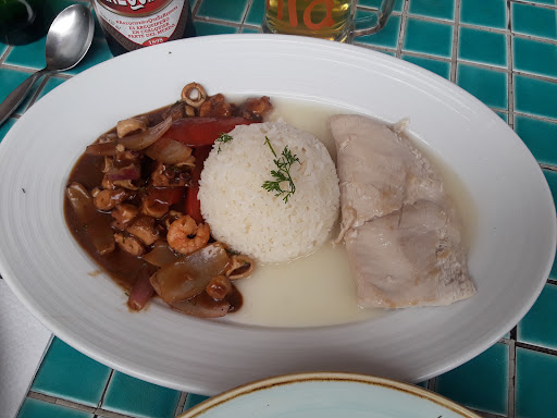 Read moreEstabamos que moríamos de hambre y cerca a la zona así que no sabíamos si ir al Perla al Vikingos o Manta. Entramos a Manta y ya era pasada las 4 PM había gente y nos recibió muy atento Jesús quien nos atendió muy amablemente nos pedimos la limonada con Hierba buena, muy rica. Un arroz con mariscos que parecía más un risotto pero estaba muy bueno en sabor Yó pedí un lomo strogonof término medio con fetuccini a la carbonara, la pasta estaba buena y la salsa también el lomo llegó 3/4 pero el corte del medio si estaba en 1/2 el borde de un lado un poco pasado de cocción pero la combinación del lomo salsa y pasta estaba genial. Los servicios higiénicos estaban limpios para la hora que era osea que alguien está muy atento a esa limpieza. Agredecer a mi hijo que le gusta venir a Manta personalmente prefiero otros locales pero está ves me fuí contento del lugar....
