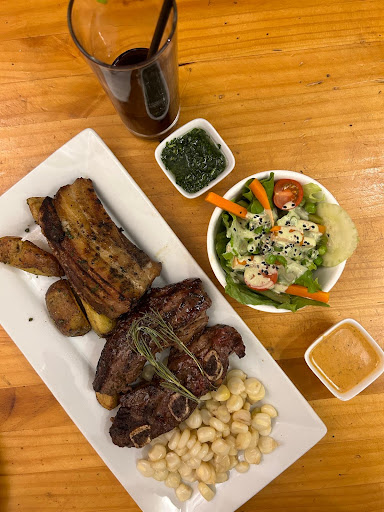 Had the mixta picarones — incredible. So light and fluffy it was the perfect surprise appetizer (it seemed like everyone was having it as an app? I’m not sure but we were served it first). And then you have the syrup which is so lightly sweet it’s the perfect accompaniment to the picarones. In addition we got a cup of chicha and a cup of poncha de cacao which was probably the coziest warm drink we’ve ever had. It has pineapple, papaya, ginger, and all of these other local fruits and anise, cloves, and cinnamon. Highly recommend it. I wish we could make this back home. The chicha (the first time I’m having it) was misleading tame in sweetness and was also a banger. It was the perfect light but full bodied drink to cut through the richness of the meats we had as our main. As for the mains: we got the ribs and the steak. Steak was a smidge overcooked but the crust and browning on it was as undeniable and it was seasoned to perfection. The ribs had a lot of fat and crackling on it (chicharron?) and were food. Potato’s were incredibly crispy on the outside and so soft and fluffy on the inside. The chimichurri and the aji were the best we’ve had yet in Peru. Overall highly,...