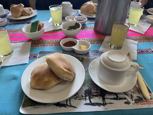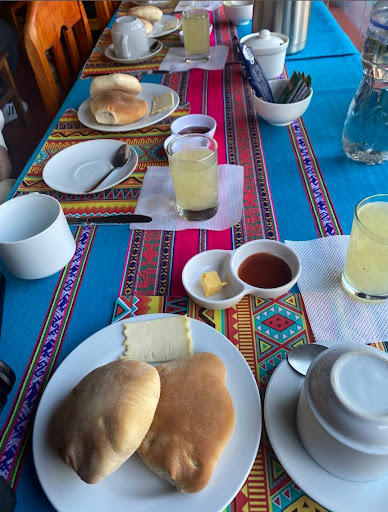 I ate there breakfast in our way to Colca Canyon. A standard meal for everybody regardless his needs: tea, scramble egg, 2 pieces of bread, butter, marmalade. I could charge my phone. The...