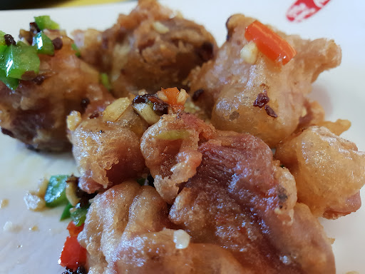 A little bit slow on serving considering the branch was meant to serve on the go traffic of travellers passing c5 extension. There weren't even many people to possibly cause slow service. I ordered what i think is a new dish, salt and pepper pork. The taste is salty, with a familiar taste of their chilli sauce, plus fresh chillis and some green onions. For me it lacks the pepper taste, which i assume should come from black peppers. The texture was good though cause they put some coating of flour??. The dish comes with kropeck and fried egg rice. Its also a good thing that they allow you to order add on eggs. I asked for a sunny side up add on. It costs only 10 bucks. Probably the cheapest sulit thing you could order. Its the same price as carinderias. Order two, then youll have a filling breakfast type meal for an additional 20 bucks. Its not on the menu though. Just make sure to be clear with ordering add on egg ckz last time i ordered extra fried egg instead of sunny side up egg, they gave me an additional fried egg rice. Its like getting extra rice instead of egg. The place where this branch is situated is kinda new and they have a big church there. Something for me to check out next time i pass by. Sorry for the possibly deceiving size of the pork in the picture. I forgot to take a picture before taking a bite so i was forced to take a close shot to showcase a neat...
