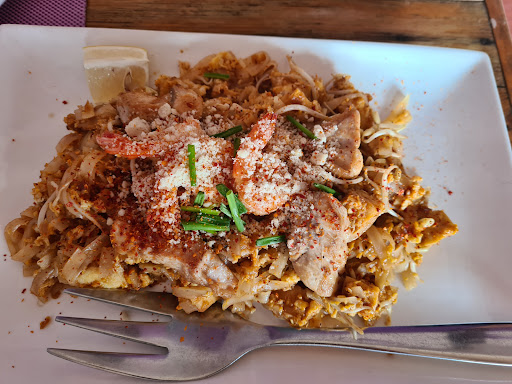 We got curious because a number of people were dining here. Also, I saw a generally high rating in Google so we tried it out. Unfortunately, we didn’t like the food. I’ve tried better Thai small food restos/ street stores with the same price or even cheaper. We got their “best seller”, the Thai fried rice, which tasted ordinary. The chicken pandan was just fine, they served a mix of thigh and breast. The part we didn’t appreciate the most was that our food took almost 45 mins to be served considering we just ordered two meals. The Thai fried rice was already cold. Personally, we’ve decided not to come back here since the money we paid (almost P500 for 2 pax) was...