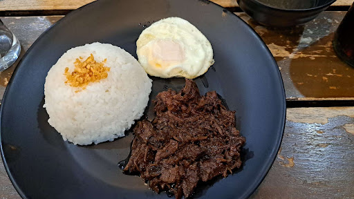 Their beef tapa, which is flaked and sweetish, is best drizzled with chili oil to bring out its true character. The accompnying fried egg is oily. Good thing, the garlic rice is not fried but topped only with toasted garlic to distinguish it from plain rice.