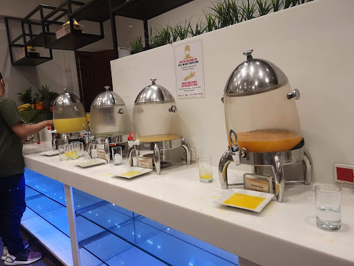 Cons: From start to finish most of the buffet platters were either empty or filled with unappetizing "leftovers" (mga ulam na nandoon but otherwise no one wanted to claim kasi mukang first wave pa nila niluto and gusto nila ipakain sa 2nd wave kasi di pa naman simot). Kindly inquired whether the dishes were going to be refilled for the 2nd wave. Replied, "Ginagawa pa po" but until we were about leave, most were left as is Raw food station: Leftovers (Dunno how long these nasty things were just sitting there but boy they looked "bilasa" enough. The samgyupsal cuts were the only ones to be refilled continuously. Drinks station: You'd had to guess which glasses were used or not. In short they all looked used. None took the effort to dry them out and put them back where its supposed to. (If you dare to ask, the juice server gives you the silent treatment). Splatters and spills were everywhere. No one cared to fix or refill the drinks. Kulang nalang pigain ko lahat ng cucumber para pansinin nila ako. Desserts station: Yes may laman (onti). The refs were literally almost empty except for the green gelatin thingies. Mini cakes, nope no refills. Fruits were the worst, muka na siyang dinutdot or something. Nakagulo gulo na yung iba. Cutting station: Mukang part time lang si kuya server sa station nya lol. Supposedly, the concept is youd have to consume them while freshly cut. What they did was slice up several pieces and left them there to dry up in the cold. Sauces were not refilled and not refillable. When asked, "wala na po kaming gravy". Chips looked like crumbs and dips were not refilled as well. "Wala na rin" daw but they refilled them right after I left š We kindly asked what happened. One particular manager (Male, medium to large built, middle aged adult around late 30s to 40s) persistently and unapologetically insisted, "May laman naman". If it had been the case, people won't be complaining. It wasnt only us, you can overhear other tables saying "wala masyado choices noh" with disgust in their faces.