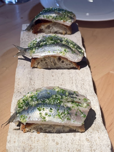 2.) The service is impeccable. The attention to detail - from the second we parked to the wait to be seated - was top-notch. We started with great aperitivo: perfect carbonated cocktails for the weather outside. The pinxtos - house-made boquerones, delicately dressed with quality olive oil on home-made sourdough bread - sent me into orbit! I would love to go back just to have this exact thing by the pool, ideally with my laptop open for work. Petition to turn this place into a lifestyle club?!? On the same note, it should be known that every request was taken care of, and extremely speedily for that matter. I've not seen a bar-back warm fresh milk soo fast. Not even a cafe! Lol.