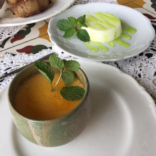 Food - The servers will give you a menu and explain the 3 course meal that they offer. Can share naman with everyone disclaimer lang. For our mains, we had italian porkchop (Superb, savory, Ate's order generous portion size, the porkchop can feed two pax), Blue Marlin Kebab (I guess? Sis BF's order, Well-marinated, so far, my favorite out of all the mains we ordered, no pic), Bacon and beef kebab (I guess, My lil sisterakas order, medium cooked, it was tender and awesome as well comes with rice and yogurt sauce?), Carbonara with baked mussels (My order, we had to have pasta sa order, so I did, it was creamy, superb taste too!), lastly, Aromatic Pork (My lil bro's order, hint of sweetness is there, comes with pickled pineapples and onions I think, smokey and flavorful, loved it too!) Their main course orders come with rice. For our appetizers, we had the dips, baba ganoush for me and my ate's BF, Hummus for my Lil bro (both comes with semi toasted pita), tzatzika for my lil sis (comes green nacho chips?), and tomato salsa for my ate (comes with focaccia bread that's also their complimentary bread). On the table they have the olive oil and balsamic so you can create your own dip for the complimentary bread. For the desserts, my ate, lil sis and ate's BF ordered panna cotta with lime sauce. Panna cotta was not overly sweet which is good, the lime sauce was also good, the sourness and hint of sweetness compliments the panna cotta. I ordered lavender creme brulee, it was not overly sweet, the creme brulee was good as well. My lil bro order fried bananas with chocolate dip. It was normal, the chocolate dip was good and a lil bit on the sweet side. It's 5 out of 5 for all our orders, (cannot find any flaws). Btw, salads and soups can replace the dip appetizers, however, there's an additional charge. The price of the 3 course meal will depend on the mains you will choose. (Sadly, I forgot to take a pic of the menu and the blue marlin kebab. Lol always hungry.)