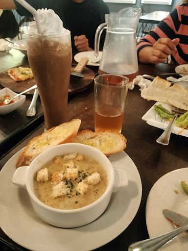 Now on to the food. The food was really good we had Taco Salad, Aloha Pizza, Chicken Steak, Aligue Pasta and Wild Mushroom soup we were not dissappointed with any of them their prices justifies the fresh and quality ingredients they use even the hot sauce is home made ala blender using real tomatoes without MSG and additional flavorings. I also tried their Hazelnut Choco Frappe and it was great with generous serving size and price you cant beat since i have been to all the cafe in Amadeo so there's no need to hop to a nearby cafe for coffee as they already offer quality coffee on their menu.