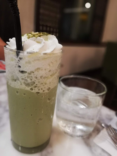 With the dishes we had an appetizer (Mushroom Ravioli), pizza (Seafood), pasta (Bolognese) one main course (Salmon Steak). We also have refreshments. The Mushroom Ravioli is a must try!! I really love that one. It is like something I haven't tried before. The serving size depends on the dish. Pasta and Pizza are mostly served as 2-3 service size. Their Matcha drink is a bit sweeter than I expected.