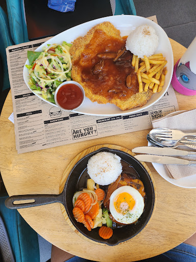 Read moreI have to be completely honest here, I believe this cafe/restaurant is great, and the food are delicious, and if the circumstances wasn't like today, 01/02/23, our experience would be utmost amazing. Let me tell you the experience we went through. First of all, when we got our food, it was in the 20 minute mark, half of our order was already at our table (it was nice and the food are delicious, the serving of the food as well, well plated, tender, and just delicious), we waited patiently for 40 minutes, we were just waiting for the last 3, it was 2 samgyup plate (If I remember correctly) and a burger steak, we waited and waited and waited, an hour came in, still no food, finally after telling the service crew what had happened, they gave us the reason; "bago raw po yung mga nasa taas, at madami nag order" I want to say I believe that excuse until I got my food served, my samgyup: a little on the cold side, hard to chew, and a little bland, I was shock and disappointed, I waited for more than an hour for this? Not only was the food and service sucked half way through, but when they asked us if we want to re-heat the food I said "no, im okay with that although I would want an apology." The waiter looked at me stupidly and just chuckled and left, (I wasn't joking for that, I do prefer a proper apology than getting my food re heat). I do believe that if weve gotten to a more proper time it would not end up really horrid. I still enjoyed the food, and I would continue eating here. I just hope they change their principles and values at...