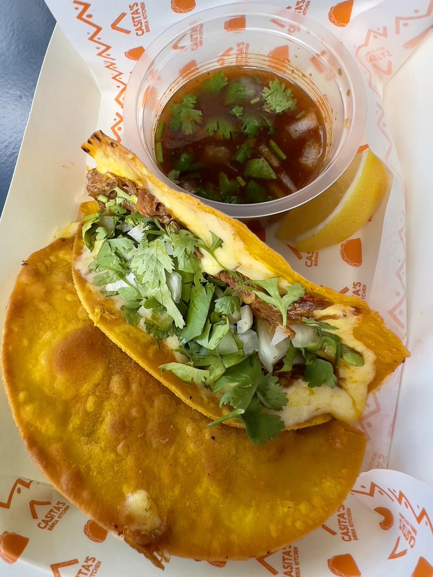 Beef Birria Tacos - theyâre absolutely delicious! I said from my previous review for another Birria Tacos shop is that theirs, is the best tasting but had Casitasâ birria tacos two days ago and the otherâs yesterday (coz Iâve been craving birria tacos these days). I am absolutely truthful now that I had the chance to compare the two again and Casitasâ is better. What made it better? The cheese! The cheese pull I get each bite! Itâs a game changer!