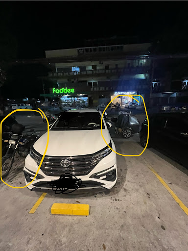 Note that there is a separate parking area for motorcycles on the other side of the store, but as you can see in the picture, one motorcycle is parked in the car parking area and the tricycles are blocking the driveway - so we cannot park properly. Itâs not only us who experienced this, the other car leaving the premise had a hard time moving out of the parking lot because of the tricycles parked behind. There is no assistance from the management and they have not reprimanded/guided those who did not park properly in their parking space.