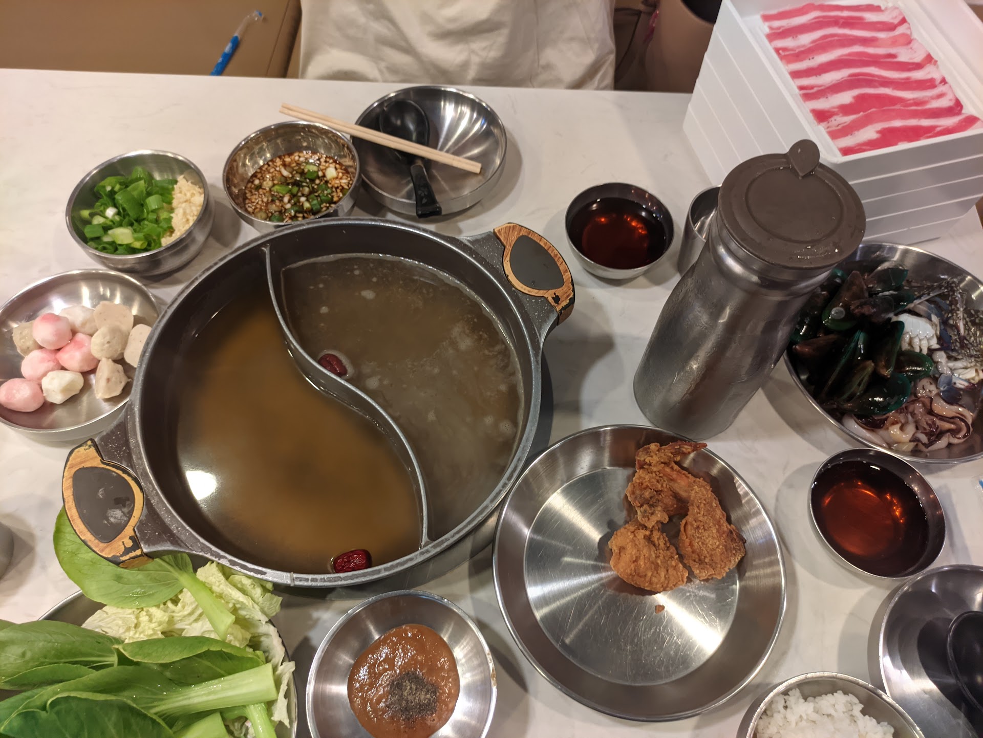 We go here when there's that need for a heart-warming soup. Price is a bit on the higher end but for what you get, I would say it's reasonable. Fresh vegetables and seafood, with some side dishes like fried rice, burgers, and fried chicken plus fruit and ice cream for dessert.