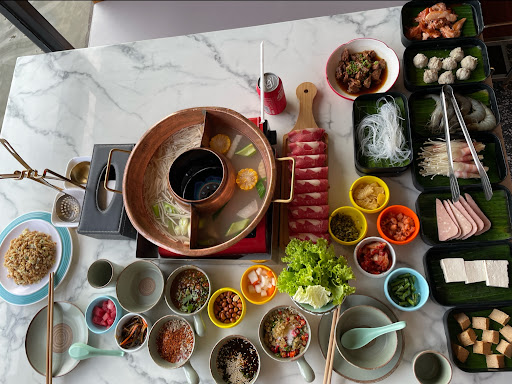 You can dip meat in the hotpot or use the grill on top. The sauces station is where you can assemble your own sauces according to your palate.