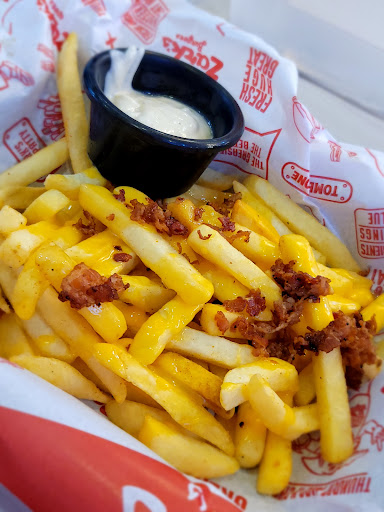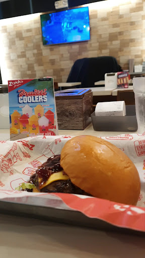 Devoid of customers. Good for dining in, but bad for the business owners Group meals. Burgers are slightly above ok and filling. I think I'd rate Wendy's a bit higher than Zark's burgers. Can attempt challenges. Eat for free if you can finish em. If. Plastic gloves included for clean hands.